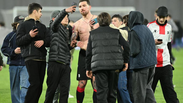 Ответный стыковой матч за право играть в Лиге B прошел накануне в Тбилиси и завершился со счетом 6:1. Как пишет «Sputnik Армения», после финального свистка грузинские болельщики выбежали на поле и устроили перебранку с армянскими фанатами, в сторону которых также полетели разные предметы.