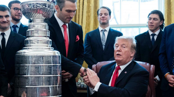 В первый президентский срок Дональда Трампа многие чемпионы ведущих спортивных североамериканских лиг отказались от приема в знак протеста против политики Трампа. Но «Вашингтон» с Овечкиным посетили Белый дом.