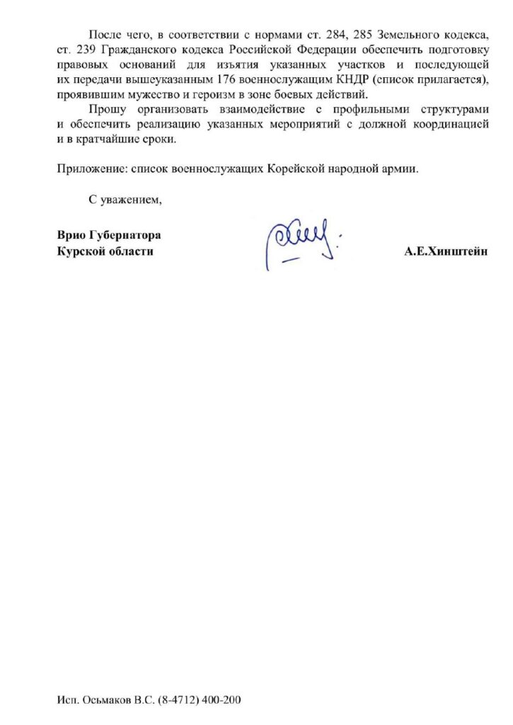 В качестве награды предлагалась передача военнослужащим КНДР земельных участков в Курской области, изъятых у граждан РФ после инвентаризации неиспользуемых земель, включая сельскохозяйственные и строительные территории.
