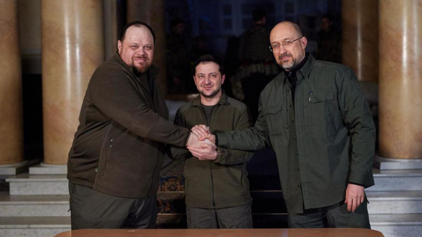 25 февраля 2022 года, на следующий день после начала военной операции, Минобороны России сообщило о блокировании Киева с западной стороны. В тот же день Зеленский опубликовал видео из Киева вместе с представителями своей администрации и премьером Денис Шмыгалем и опроверг данные о своем отъезде из украинской столицы.