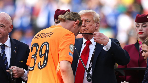 Президент США Дональд Трамп вручил российскому вратарю французского «Пари Сен-Жермен» Матвею Сафонову и другим игрокам клуба серебряные медали клубного чемпионата мира по футболу.