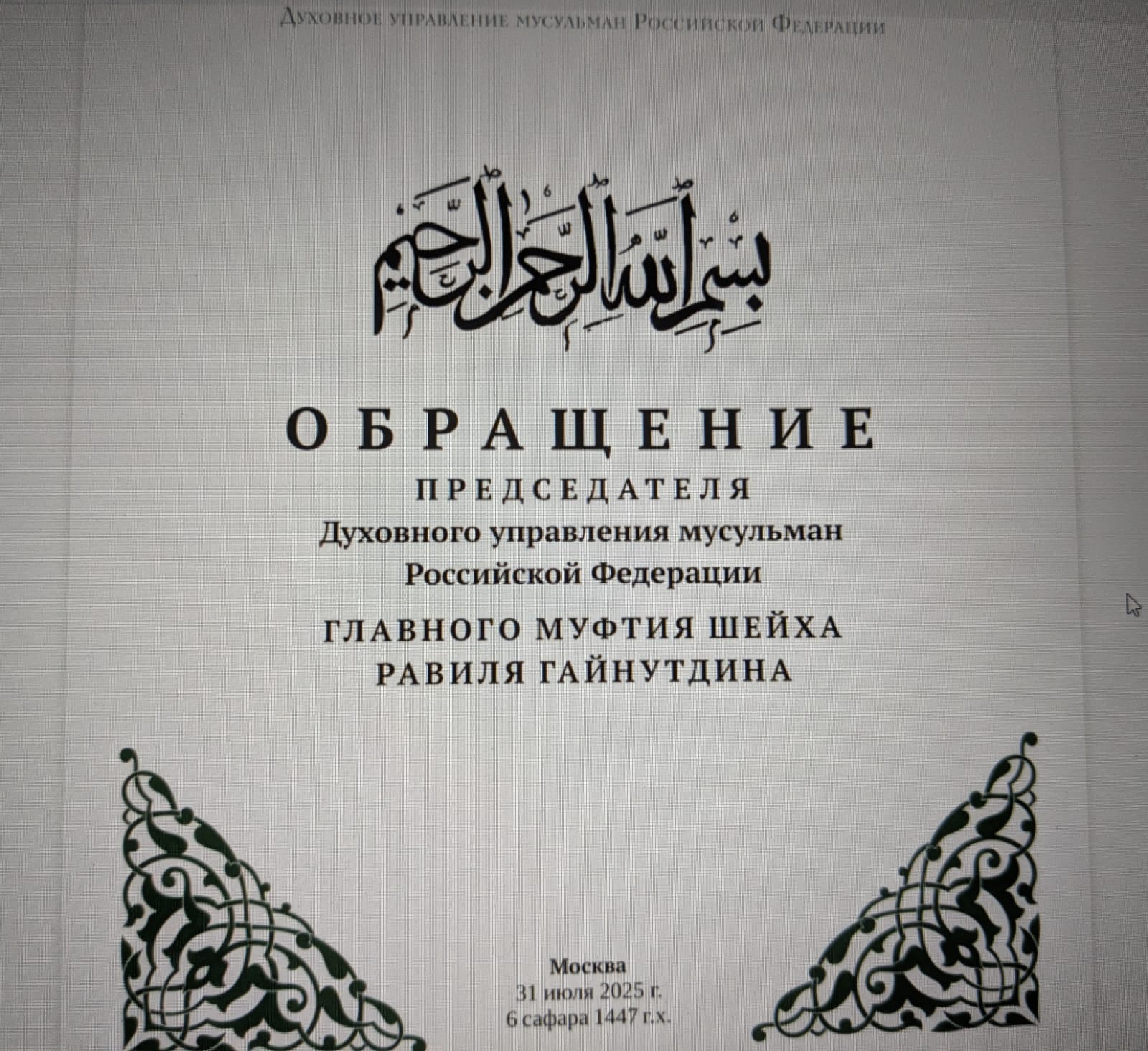 Так вот, в чем суть – главарь мусульман всея России настоятельно просит главу ДНР Пушилина обеспечить каждого мусульманина водой в первую очередь дабы тот смог подобающе мыться перед молитвой, ибо так завещал Аллах.