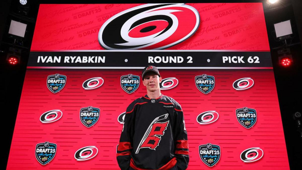 Рябкин был выбран «Каролиной» под общим 62-м номером во втором раунде драфта НХЛ 2025 года, в августе он подписал трехлетний контракт.