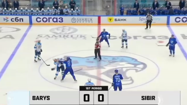 В матче регулярного чемпионата «Фонбет» — КХЛ между астанинским «Барысом» произошла драка уже на первой секунде.