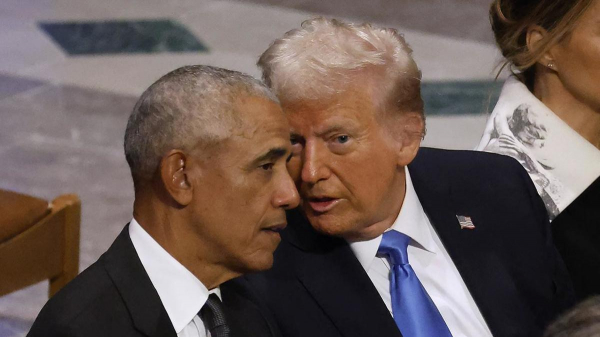 Журналистам удалось заснять, как два политика оживленно общались, сидя рядом перед началом панихиды. Разговор проходил в непринужденной атмосфере — Трамп и Обама активно жестикулировали и улыбались. Примечательно, что сначала Обама прошел мимо Трампа, поздоровавшись с бывшим вице-президентом Майком Пенсом.
