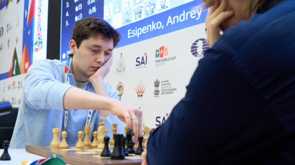 Российский шахматист Андрей Есипенко стал четвертьфиналистом Кубка мира, который проходит в Гоа (Индия).
