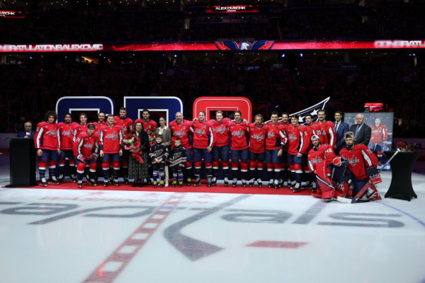 «Вашингтон Кэпиталз» перед домашним матчем с «Виннипег Джетс» (4:3) провел церемонию в честь 900-го гола российского нападающего Александра Овечкина и достижения им отметки в 1500 матчей в регулярных чемпионатах Национальной хоккейной лиги (НХЛ).