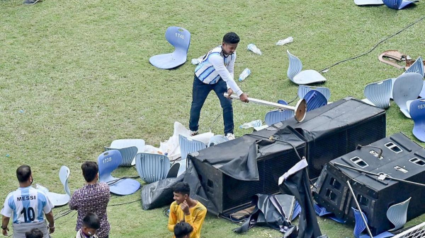 По мере распространения информации о том, что аргентинец не задержится надолго, на трибунах начали нарастать беспорядки. Напряжение достигло пика, когда Месси покинул поле спустя всего 10 минут, что вызвало гнев у болельщиков, многие из которых прибыли на стадион еще рано утром. В воздух полетели бутылки, были повреждены рекламные щиты, и сотрудникам службы безопасности пришлось вмешаться, когда внутри стадиона вспыхнули протесты.