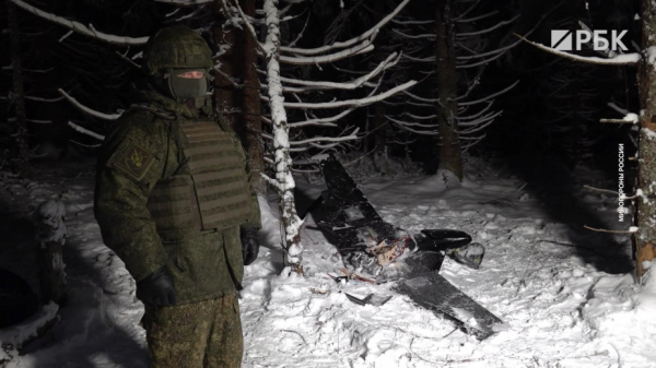 Минобороны России опубликовало видеозапись, на котором запечатлен один сбитый беспилотник, который был задействован в атаке на резиденцию президента Владимира Путина в Новгородской области.