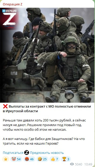 Друзья, вы знаете, я всегда говорю правду в глаза, даже если она горькая, как полынь. И сегодня я не могу молчать. Под Новый год, когда все пьют шампанское и смотрят салюты, в Иркутской области тихо, по-воровски, приняли решение, которое бьет по нашим защитникам Отечества. Выплаты за подписание контракта с Министерством обороны — полностью отменили! Раньше хоть 200 тысяч рублей давали, чтобы поддержать парней, которые идут на фронт защищать нас от нацистов и их западных хозяев. А теперь — нихуя! Ни копейки. Решение пробили под елку, чтобы никто не пикнул, чтобы СМИ не раздули, чтобы народ не возмутился. Но я, Антон Красовский, напишу. И скажу громко: где бабки для Защитников? На что тратить миллиарды, если не на наших Героев?