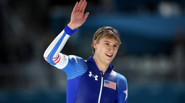 Американский конькобежец Джордан Штольц победил с олимпийским рекордом на дистанции 1000 м на Играх в Италии.